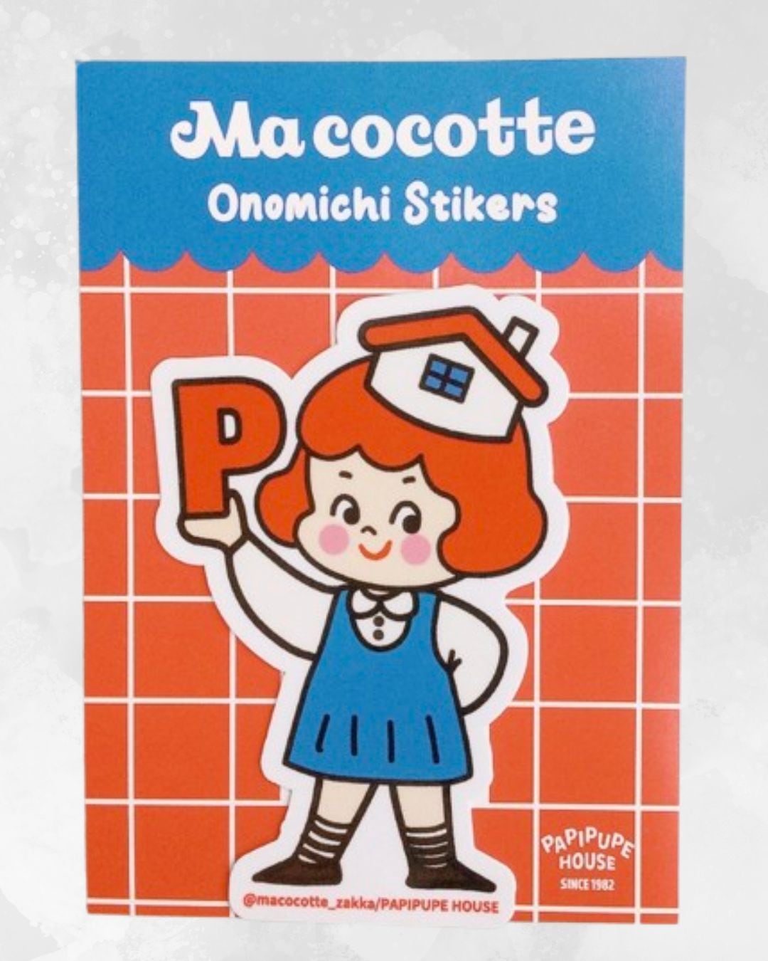 赤髪の女の子「Pガール」頭に乗っているおうちはお店をイメージしています。